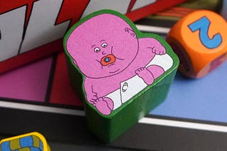 Exploring how simple dice mechanisms can be used to create deep decision spaces in strategy games via Rumble Nation published by Hobby Japan.