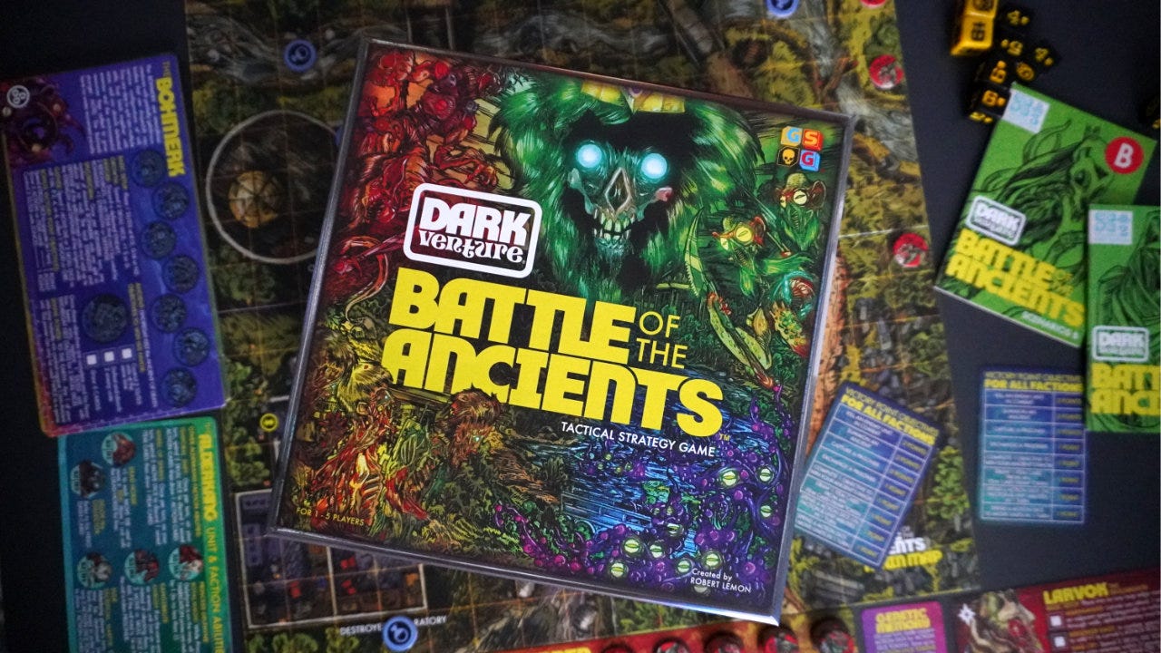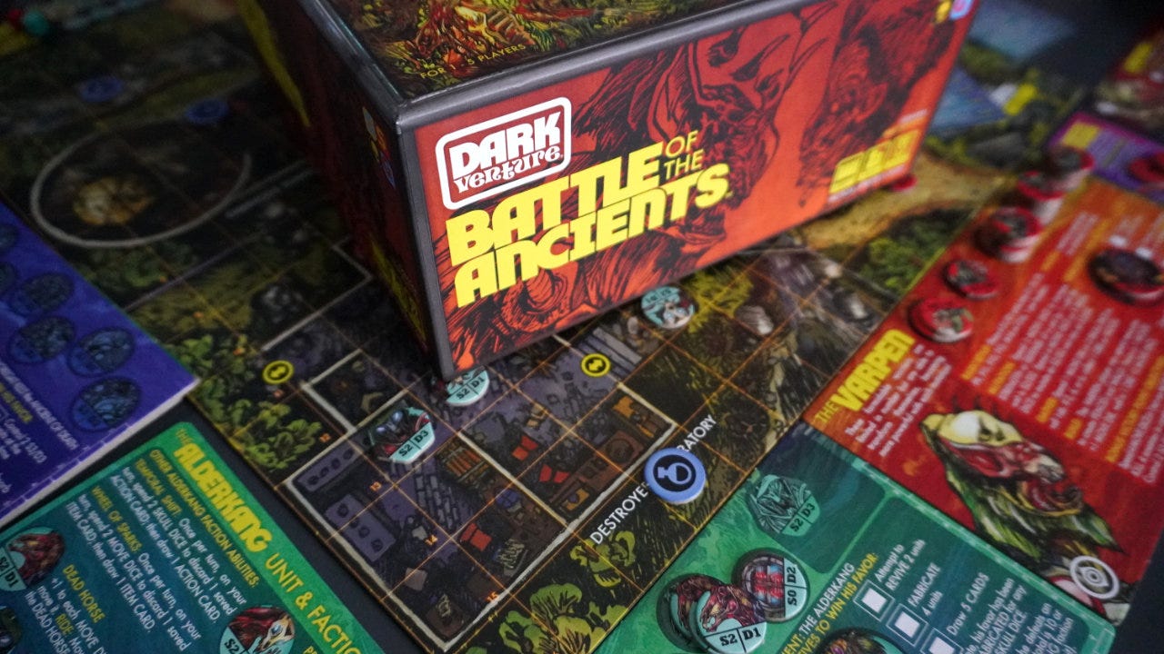 This week we are exploring how the Dark Venture: Battle of the Ancients board game uses an interesting roll-and-move mechanism that includes some tough choices.