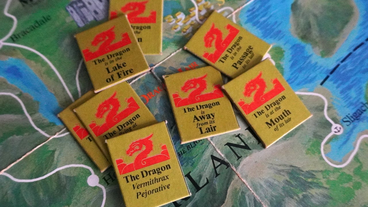 In an interesting twist, there are no dice in Dragonslayer. Instead, the dragon battles are almost entirely deterministic: