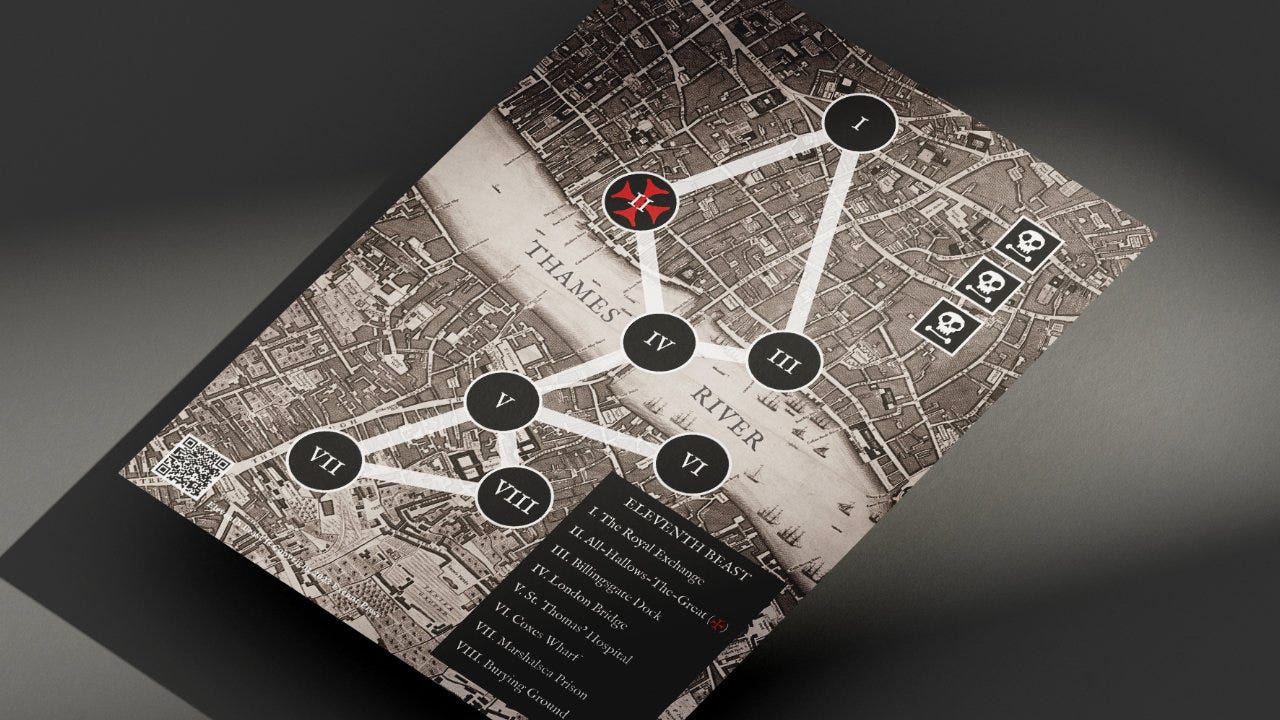 Changing paths and threats: In Eleventh Beast, once the Beast appears on the map it moves toward the Hunter each round. This blocks paths and provides a reason for the player to choose a different route. Having mobile threats (e.g. the Beast) or changing routes (e.g. impassable mudslide or unlocked shortcut) can create interesting choices for the player.