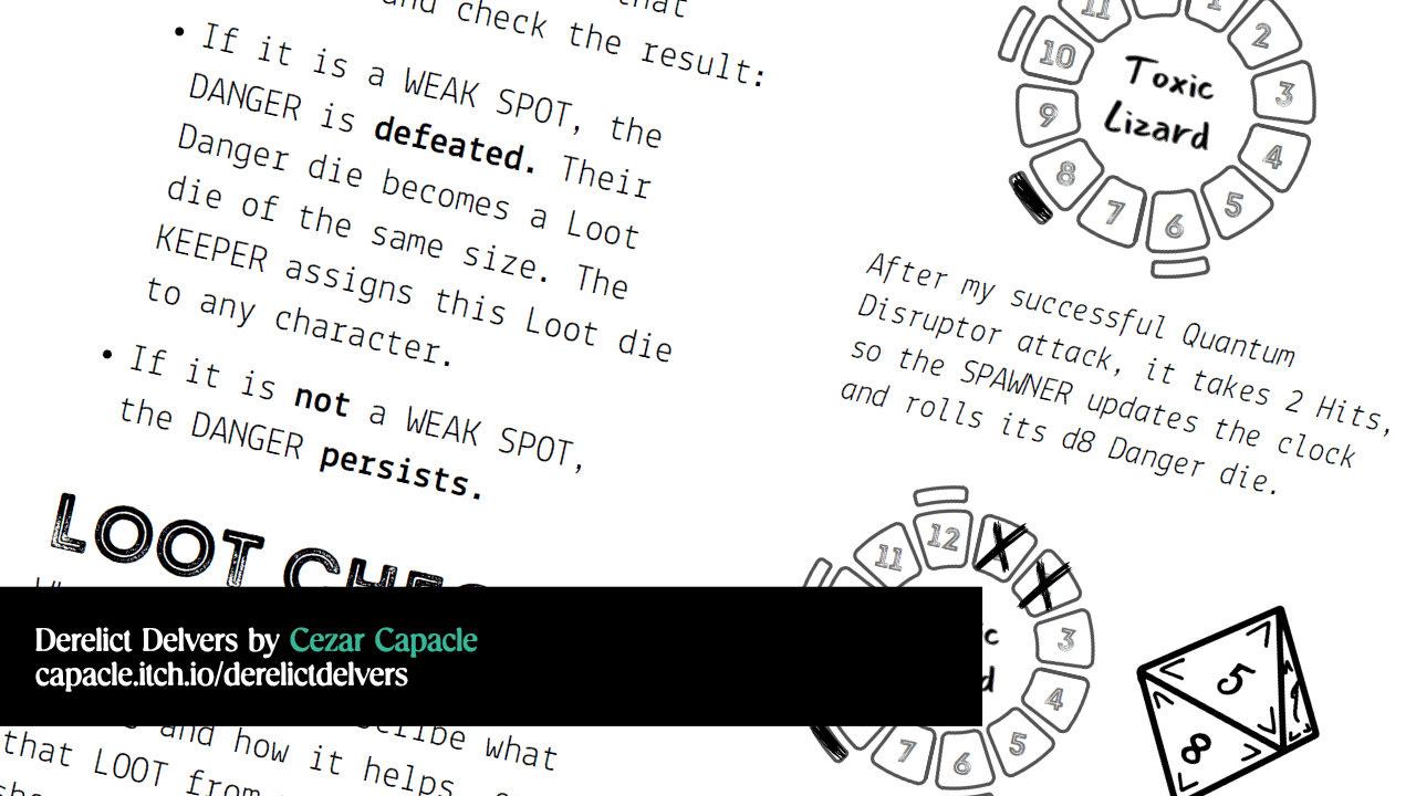 While used in a completely different way from the weak points in Derelict Delvers, I think there’s definitely some similarities here: rolling dice to accumulate a list that increases the risk of success/failure.