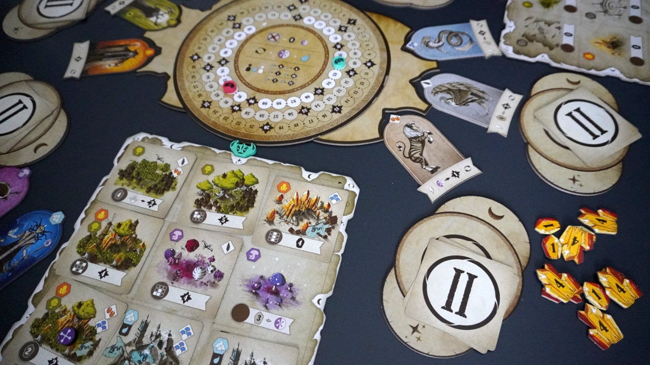 After drafting a card each turn, players activate all the biome cards in either a row or a column. Each player has an Avatar token that moves around their player board after each draft to show which one will be activated.