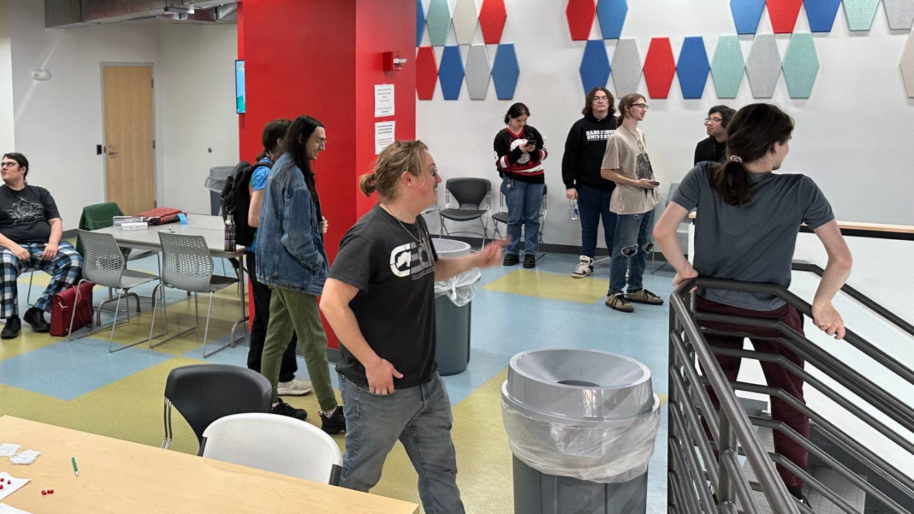 I had the opportunity to participate in a public playtest of student-designed games at Harrisburg University last week. The students are part of the “IMED 315 - Tabletop Game Design Studio” course co-taught by professors Greg Loring-Albright and Anthony Ortega.1