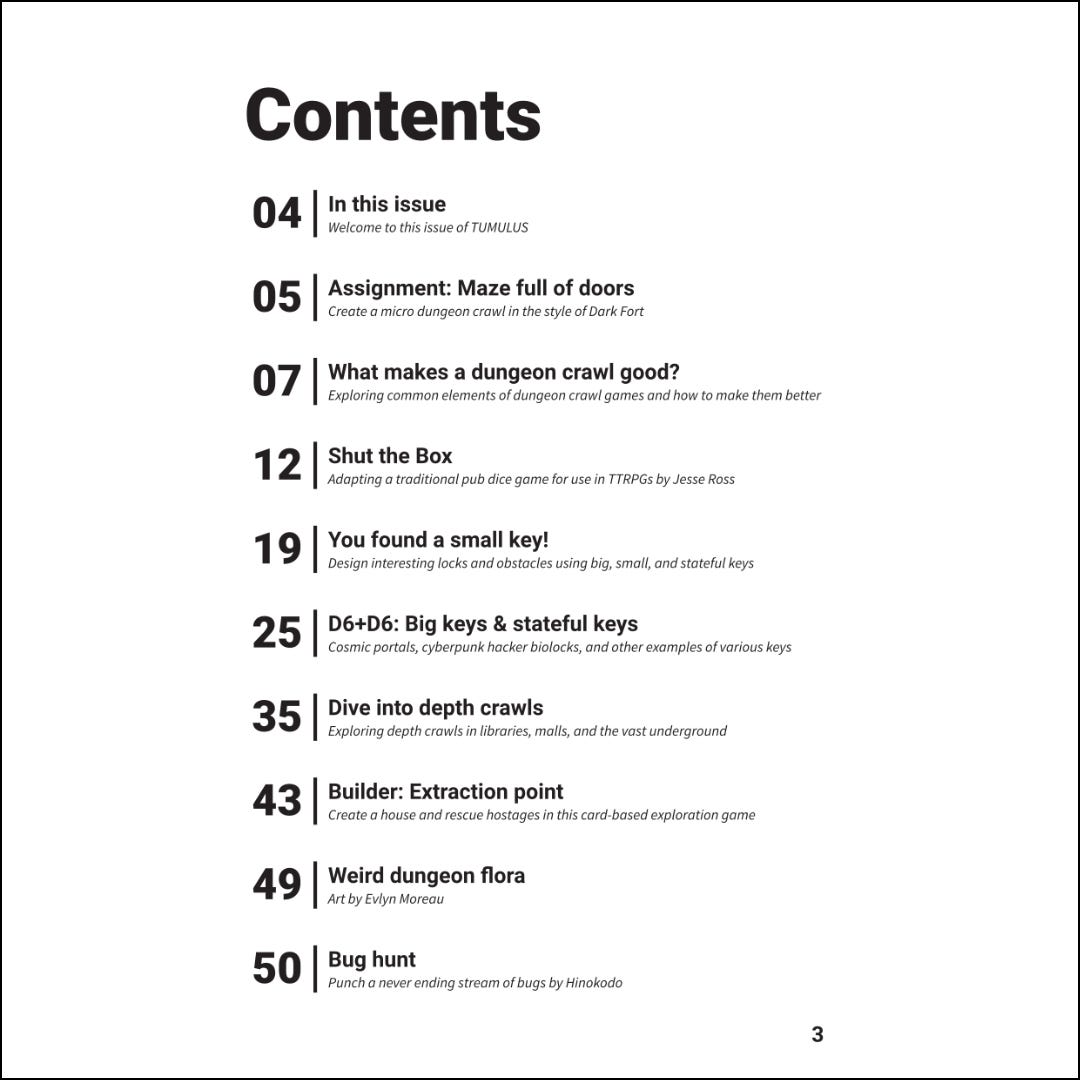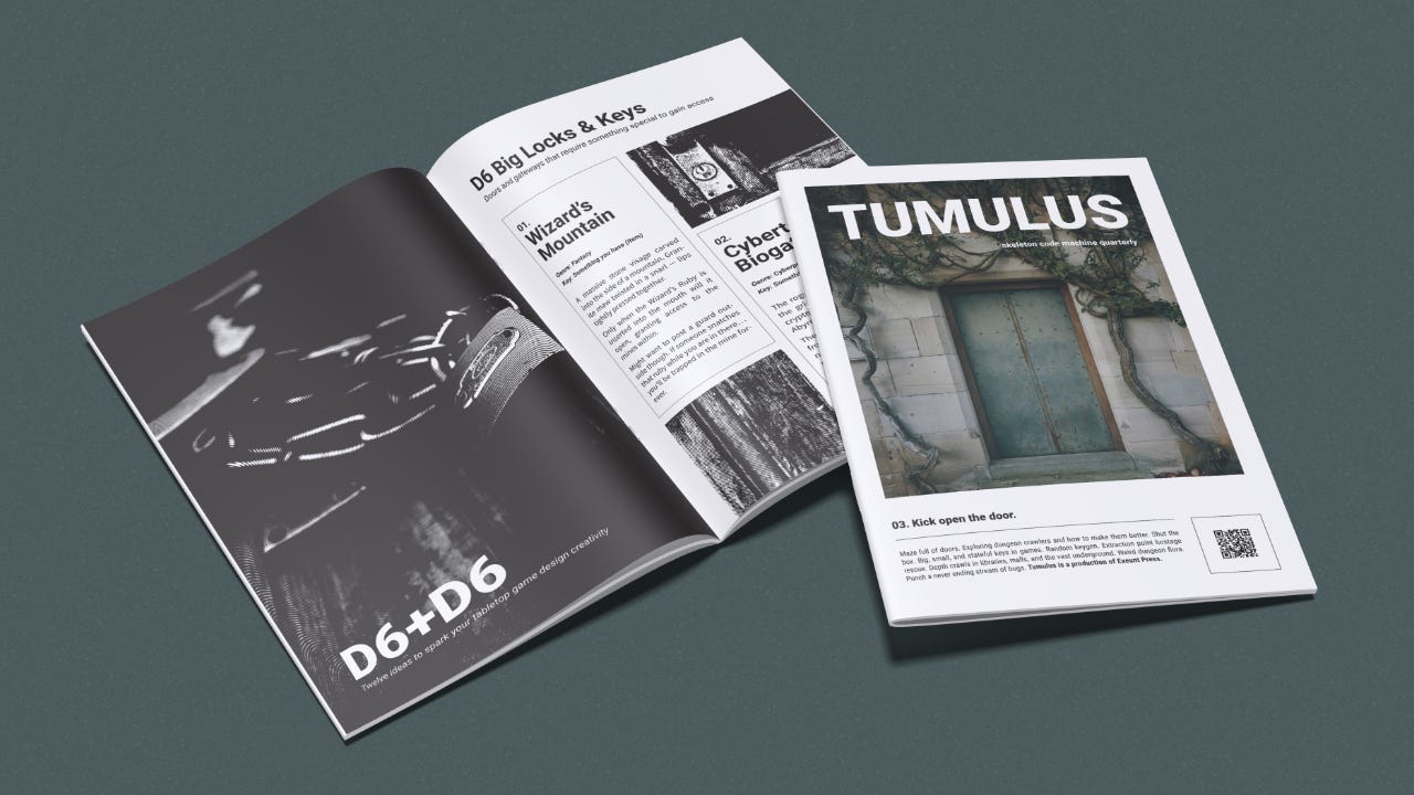 The latest issue of TUMULUS is shipping now, including creative inspiration for dungeon crawls, pub dice games, locks, keys, depth crawls, weird flora, and a bug hunt from Skeleton Code Machine.