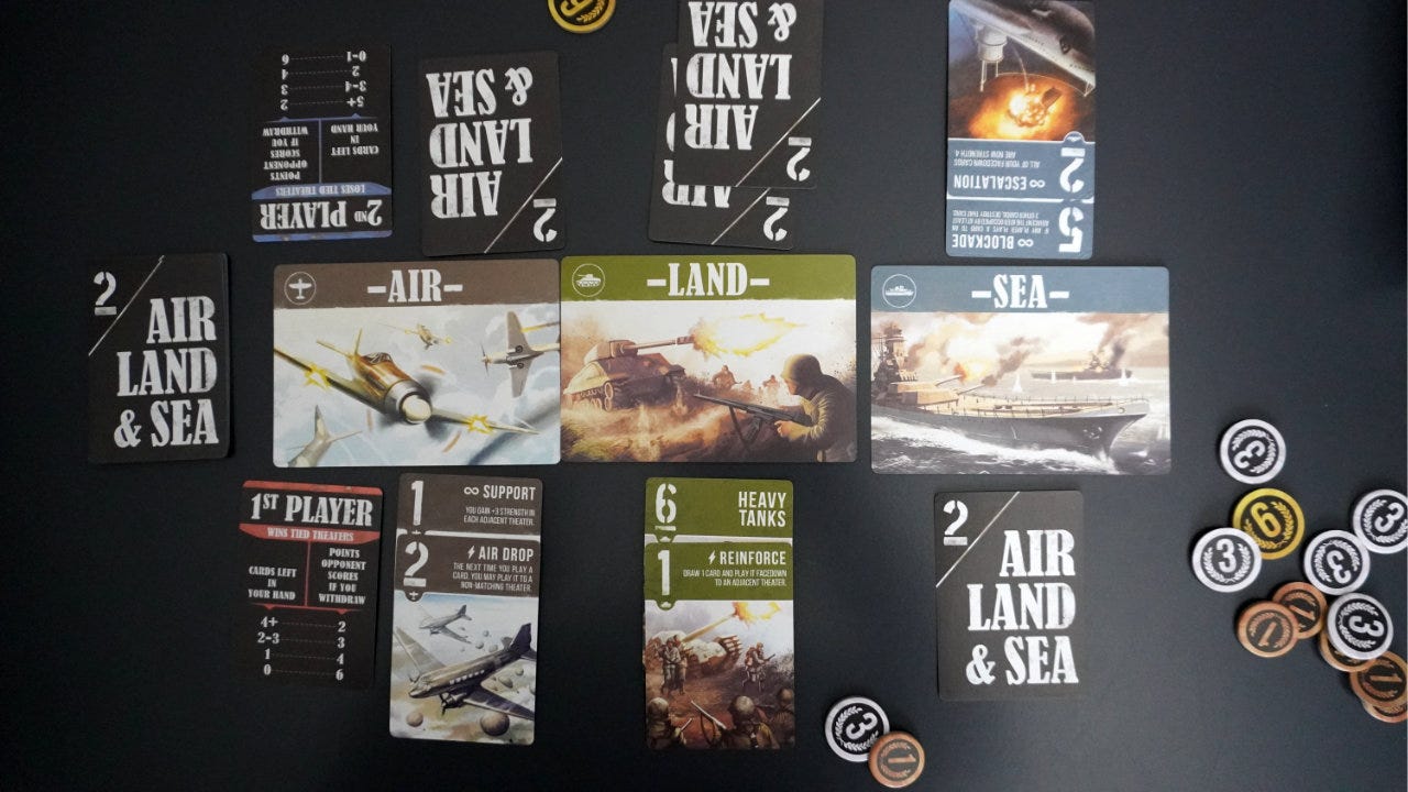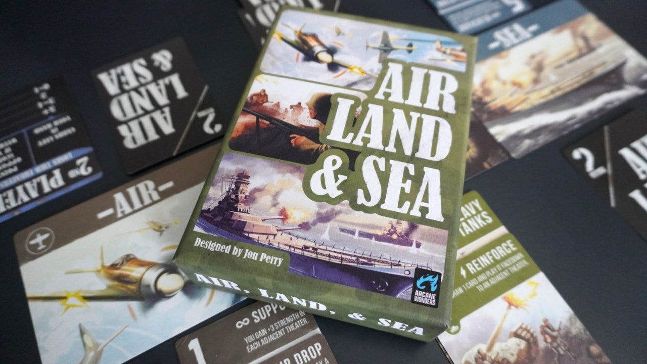 This week we are taking a look at lane battlers, using Air, Land, & Sea as a key example. Then we’ll explore how far you can stretch a lane battler until it becomes a “troops on a map” area control game.