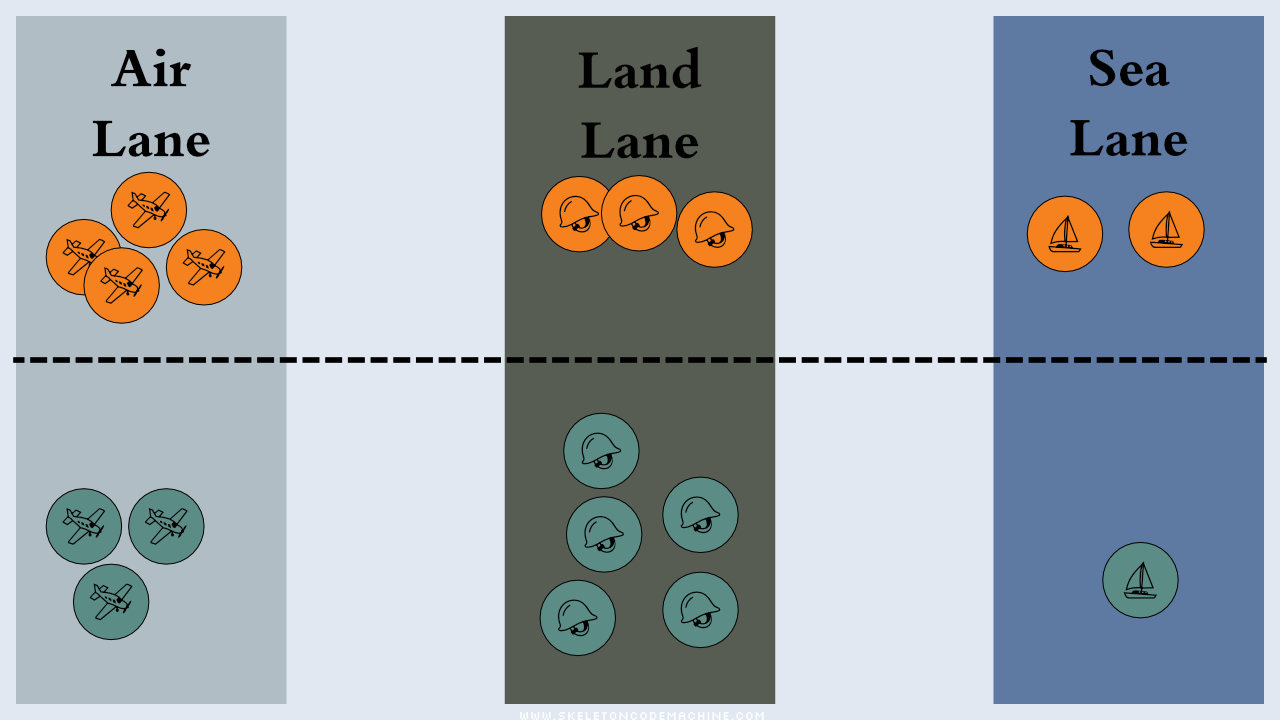 Air, Land, & Sea is a perfect example of a lane battler game: