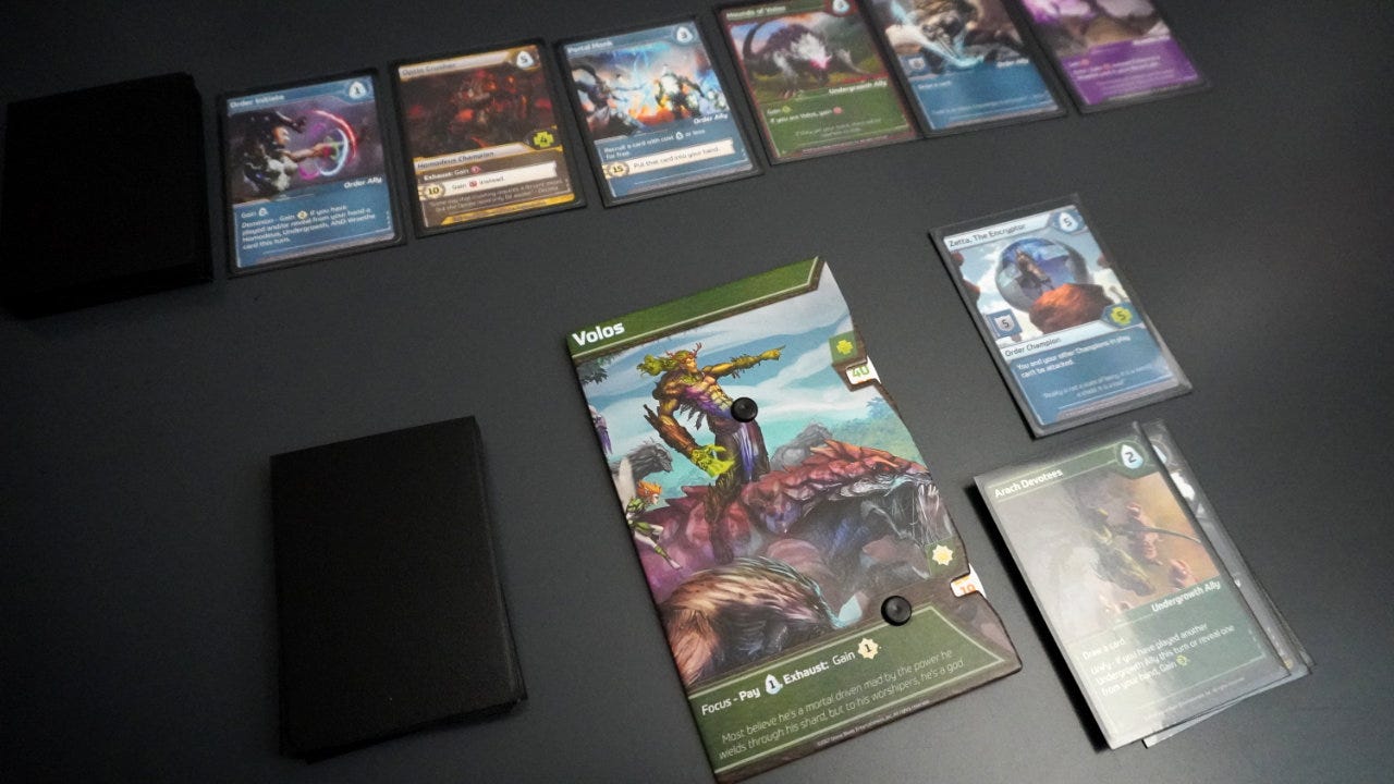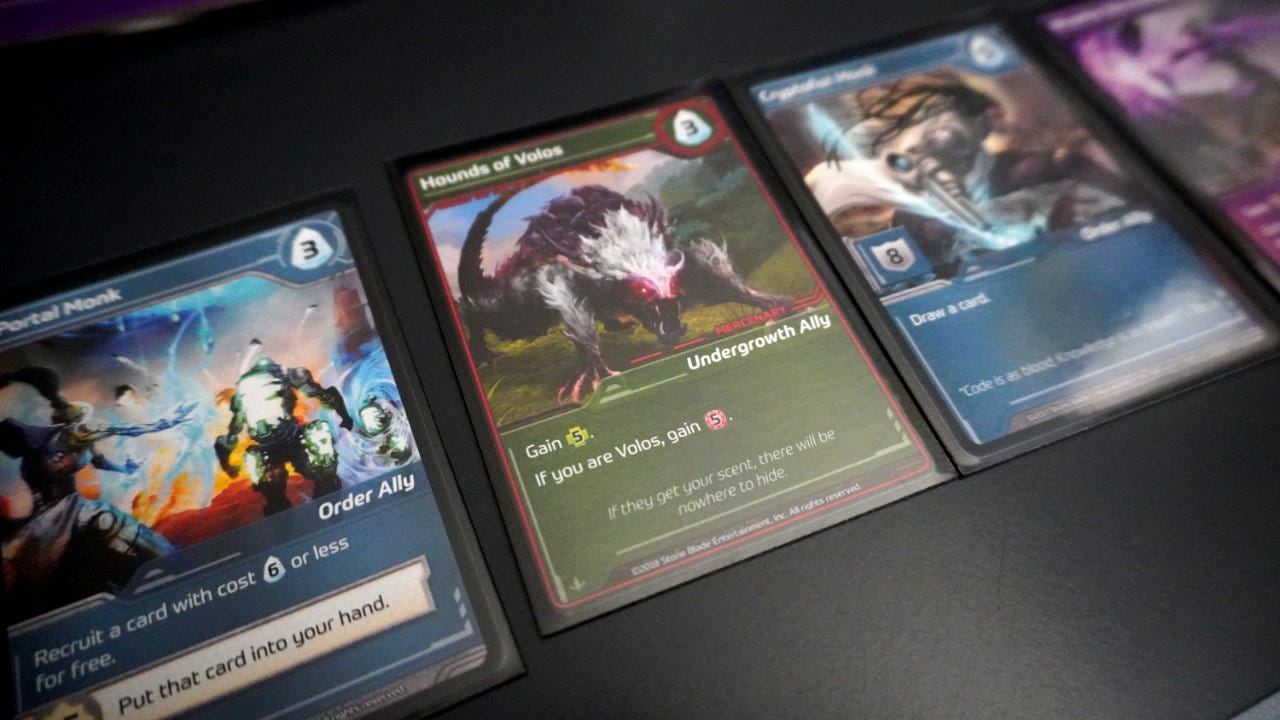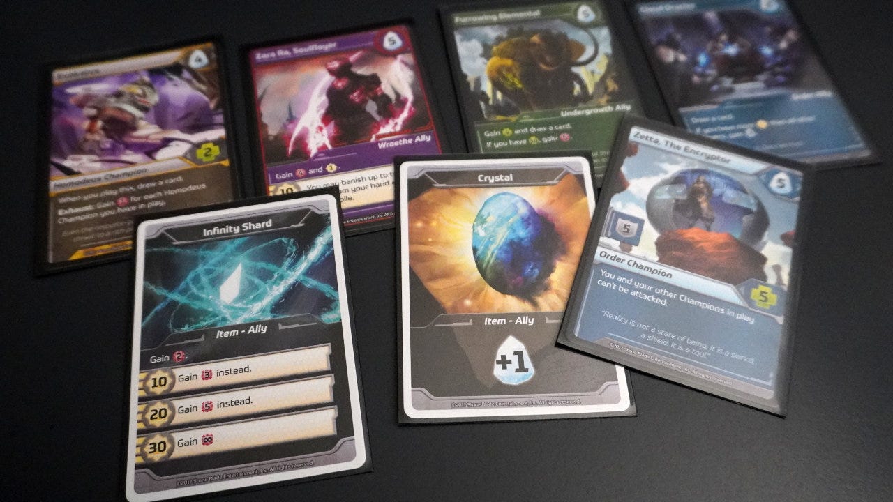 Champion cards are similar with a cost and effects, but unlike ally cards, they remain in play. They are placed on the table to create tableau of Champions all of which can be used turn after turn.
